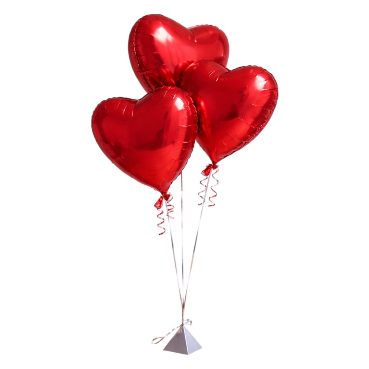 Zestaw trzech czerwonych lub różowych balonów z obciążnikiem to efektowny dodatek do bukietów kwiatowych i prezentów. Balony pięknie unoszą się nad kompozycją, nadając jej radosny i elegancki charakter, a obciążnik zapewnia stabilność i wygodę ekspozycji. Idealne na urodziny, rocznice, Walentynki i inne wyjątkowe okazje. To prosty sposób, by dodać bukietowi objętości, koloru i niezapomnianego uroku.