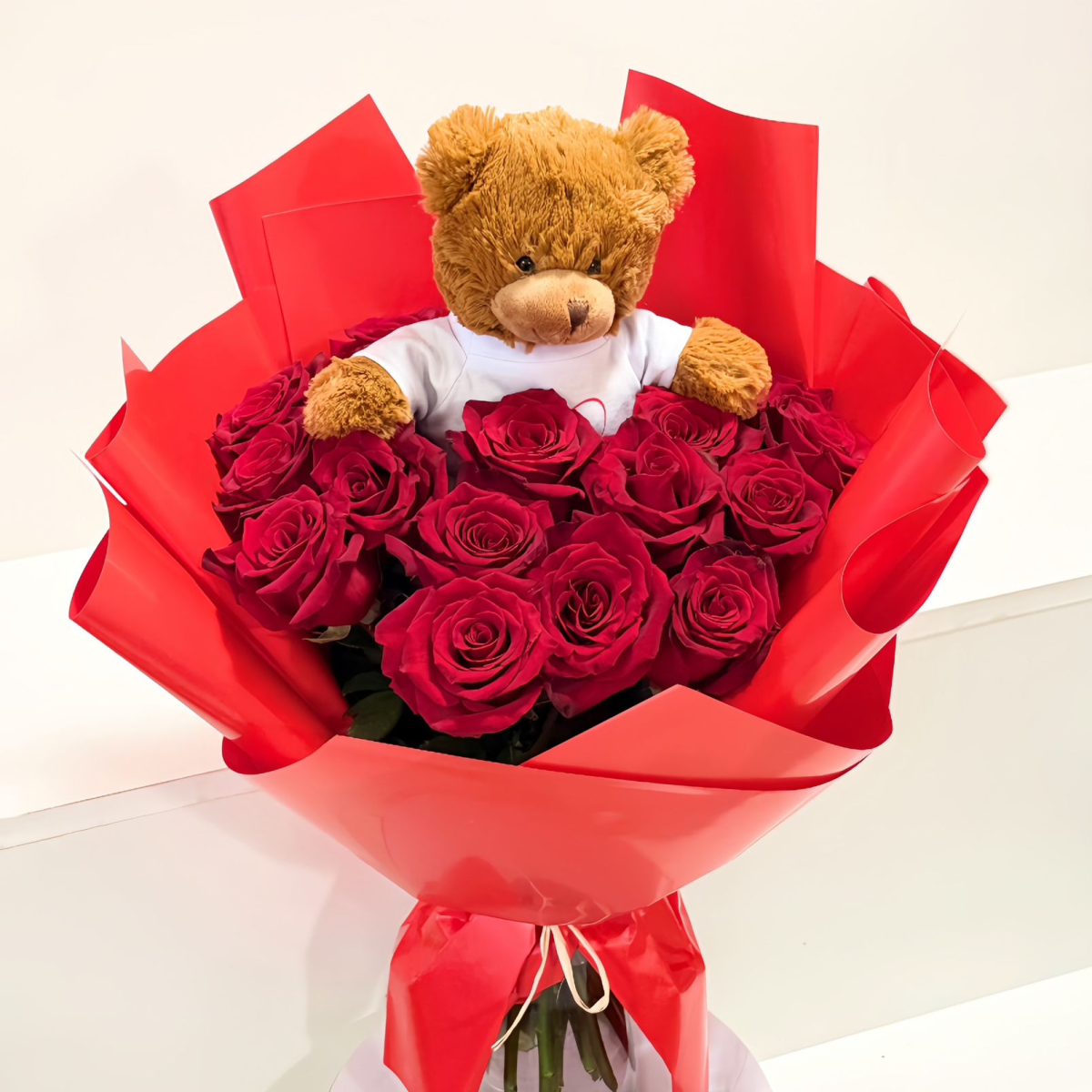 Kwiaty walentynkowe z misiem